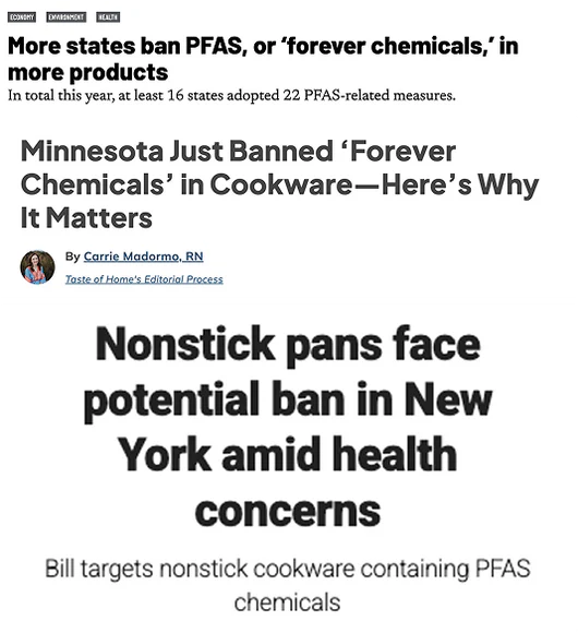 States including Colorado, Connecticut, Minnesota, and Vermont have passed laws banning PFAS—known as "forever chemicals"—in cookware.