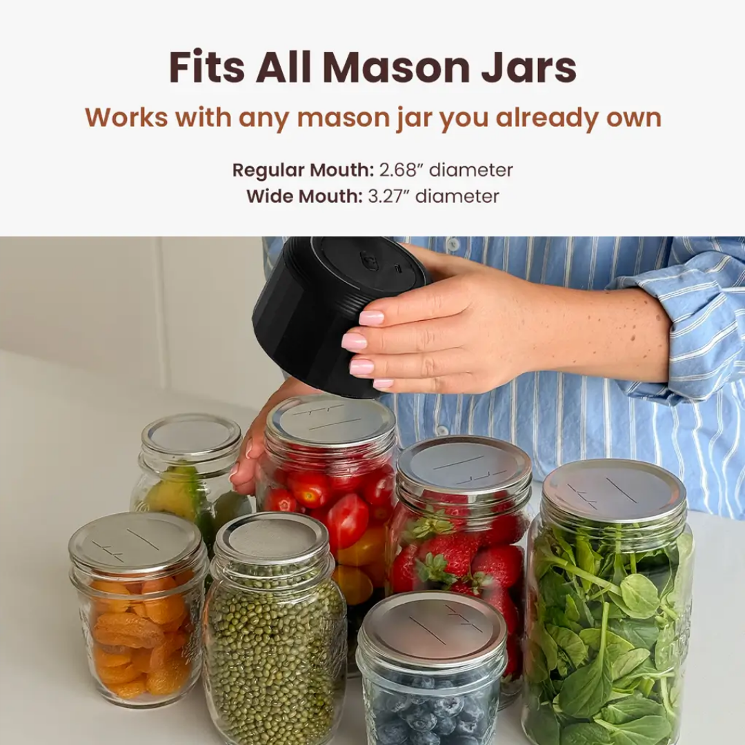 No learning curve, no setup. Just fill the jar, press a button, and seal - as simple as screwing on a lid.